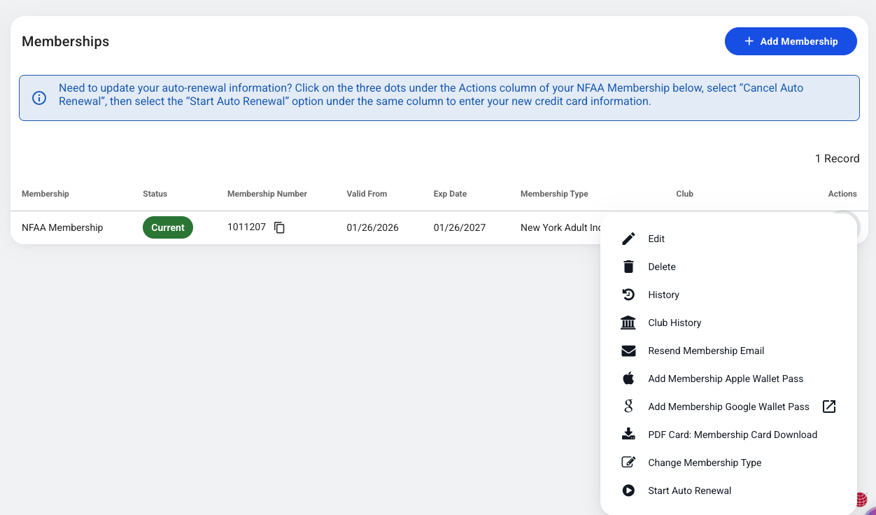 Option 2: Set up Auto Renewal from a Specific Membership or Add-On